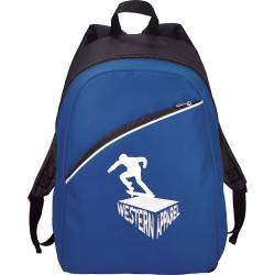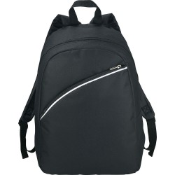 Zippered main compartment. Zippered front pocket. Adjustable, reinforced padded shoulder straps. Webbed carry handle.