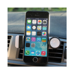 Adjustable vent mounting mobile phone holder with 360 degree rotation and sliding arm. Fits any device width from 48 to 90 mm.
