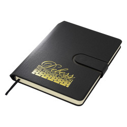 Montreal A5 Notebook truly raises the bar when it comes to both quality and style. Featuring a pen sleeve (pen additional), magnetic closure and textured linen surface, this notebook will surely make an impact. Available in black or navy. Notebook Gift Box is optional extra - see W17. If youre after a debossed notebook, check these out!
