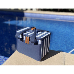 This on-trend cooler is the perfect addition to your day out at the beach, picnic with friends or BBQ in the park. Made from stylish striped polyester and featuring high quality super-insulating foam combined with ‘A-Grade’ (food safe) aluminium lining. This cooler also features super-soft cotton handles, leather look zip pullers & mini handle wrap as well as a handy outer slip pocket.