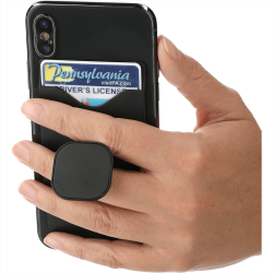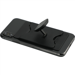 The Phone Holder with Card Wallet features a 2 in 1 functionality that can hold one credit or ID card and provides a built in grip that can be used when holding the phone or propped up. The adhesive tape on the back allows of easy application on flat-backed smart phones.