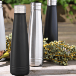 Sleek and stylish drink bottle is double wall 18/8 grade stainless steel with vacuum insulation. Available in 2 colours.