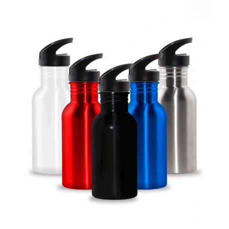 500ml Stainless steel water bottle with hard plastic straw, with carry handle. Wide mouth for adding ice cubes or pieces of fruit. Comes in plain white box. Can be pad printed, engraved or wrap printed.