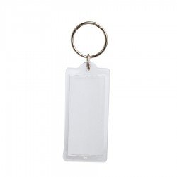 A chic and simple keyring, made of zinc alloy metal, rectangular shape with softly rounded edges, a cut-out hole with a swivel hinge on the top,...