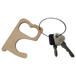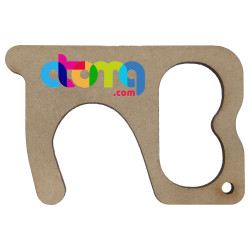 This innovative product is being manufactured in-house and is designed to HELP STOP THE SPREAD of COVID-19. It allows you to open and close doors as well as push buttons without physical touch. Touch Guard Maxi will form a physical barrier between your hand and the thousands of surfaces you touch every day. The hook section is specifically designed to be able to open a range of different sized door handles. It also opens filing cabinets, drawers and cupboards, if it has a handle…Touch Guard Maxi will open it! The button tip on the end of Touch Guard is designed for pushing Elevator Buttons, Light Switches, Pedestrian Crossing Buttons, Alarm Keypads and other pressure sensitive panels. Supplied with a stylish stainless steel keyring attachment, attach Touch Guard Maxi to your keys or simply slide into your wallet or purse. Product use instructions also provided. Made in Australia from Medium Density Fibreboard , better known as MDF, Touch Guard Maxi can be imprinted with your logo using a range of decorating techniques. The 1st option is Laser Engraving, where your logo is burnt into the timber creating a stylish yet subtle effect. The 2nd option is pad printing and the 3rd option is digitally printing your logo in multi or full colour, for maximum impact.