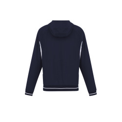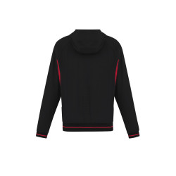 Attached hood, two-tone zip, reflective piping for visibility,Side zippered pockets to stow belongings,Laser cut feature on back provides targeted ventilated,Mens/Kids style features full, knitted hem and cuff. Fabric: Outer Shell: 4-way stretch 94% Polyester, 6% Elastane,Lining: 100% Polyester Mesh (Body) Woven (Sleeve),UPF rating - Excellent.