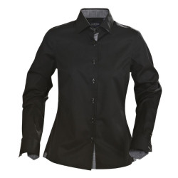 High quality ladies’ fitted blouse in easy care treated fabric. Reinforced seams in collar and sleeve ends.|Contrast fabric at cuffs, placket and inside collar. |100% Combed Cotton