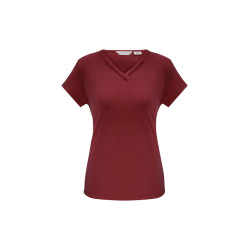 Fashionable pleat fold v-neck detail,Dressed up classic t-shirt style that flatters your shape without clinging,Can be worn tucked in or out. Fabric: 95% Polyester, 5% Elastane Jersey Knit,Soft flowing easy care fabric.
