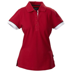 Ladies modern fit piqué polo with yarn dyed cotton. Contrasting tape at neck, placket and sleeve rib. Contrast colour on reverse side of collar. Contrasting tape at neck, placket and sleeve rib.|Contrast colour on reverse side of collar.|100% cotton, collar with elastane, 240 g/m²|White features black, white & grey stripe at neck & cuffs. Plain white on reverse collar.|Black features black, white & grey stripe at neck, cuffs & reverse collar.|Red features navy, red & white stripe at neck, cuffs & reverse collar.|Navy features navy, red & white stripe at neck, cuffs & reverse collar.