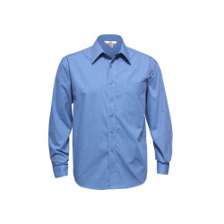 Standard collar with left chest pocket,Traditional business shirt fit with 2 back shoulder pleats. Fabric: 50% Cotton, 50% Polyester,Easy iron - yarn dyed fabric.