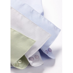 2 button adjustable cuff and alternative openings for cuff links,2 Back shoulder pleats. Fabric: Easy care 75% Polyester, 25% Cotton,Yarn dyed stripe,Easy iron and shrink resistant,UPF rating - Excellent.