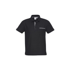 Contrast woven check placket sleeve tab and collar trim,Left chest pocket with woven check trim,Matching knitted collar and side splits,Available in Black/Check only. Fabric: 65% Polyester, 35% Cotton Low Pill Pique Knit,210 GSM,UPF rating - Excellent.