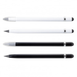 Metal twist action ballpoint pen in gloss silver finish with soft rubberised pad one end for use with your touch screen device. Supplied with black...