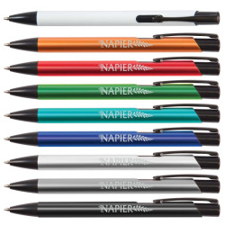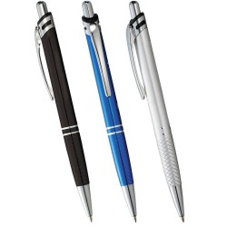 A quality Aluminium pen featuring a textured grip, integrated sliding clip and chrome push-button. Available in black, gun-metal, blue, red or...