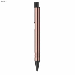 Aluminum Stylish design pen with black plastic click and tip, wide printing area. Click action with plastic Parker-Type German manufactured black ink refill, 1200 meters writing distance, tungsten carbide ball provides you with quality writing.