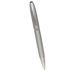 This exclusive design has a matte silver finish with detailed middle ring and ebony black end tip. Pen includes premium black ballpoint ink cartridge.