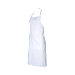 Bib apron with adjustable halter self fabric strap around neck,Unique styling,Towel loop at back of apron,1 Large central front pocket with special side slide pen and bottle opener provision,Free size 97cm x 86cm. Fabric: 65% Polyester, 35% Cotton Twill,190 GSM.