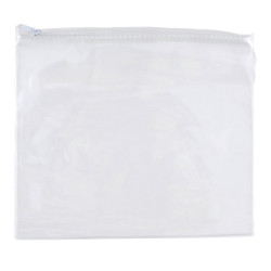 Large clear PVC pouch with White zip closure. Use to hold stationery, kids items, cosmetics, first aid items, sample collection and computer cables.