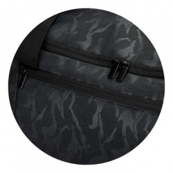 Camouflage duffle manufactured from 300D polyester. It has a sturdy zippered main compartment and front pocket, a slip pocket on one side and a ventilated shoe storage compartment on the other. The duffle has an adjustable shoulder strap and carry handles with a velcro cuff.