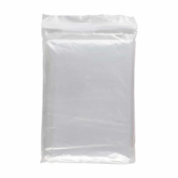 Handy clear emergency poncho with a hood (0.015mm thick), it is lightweight disposable and reusable, one size fits all, packed in a zip lock plastic bag.